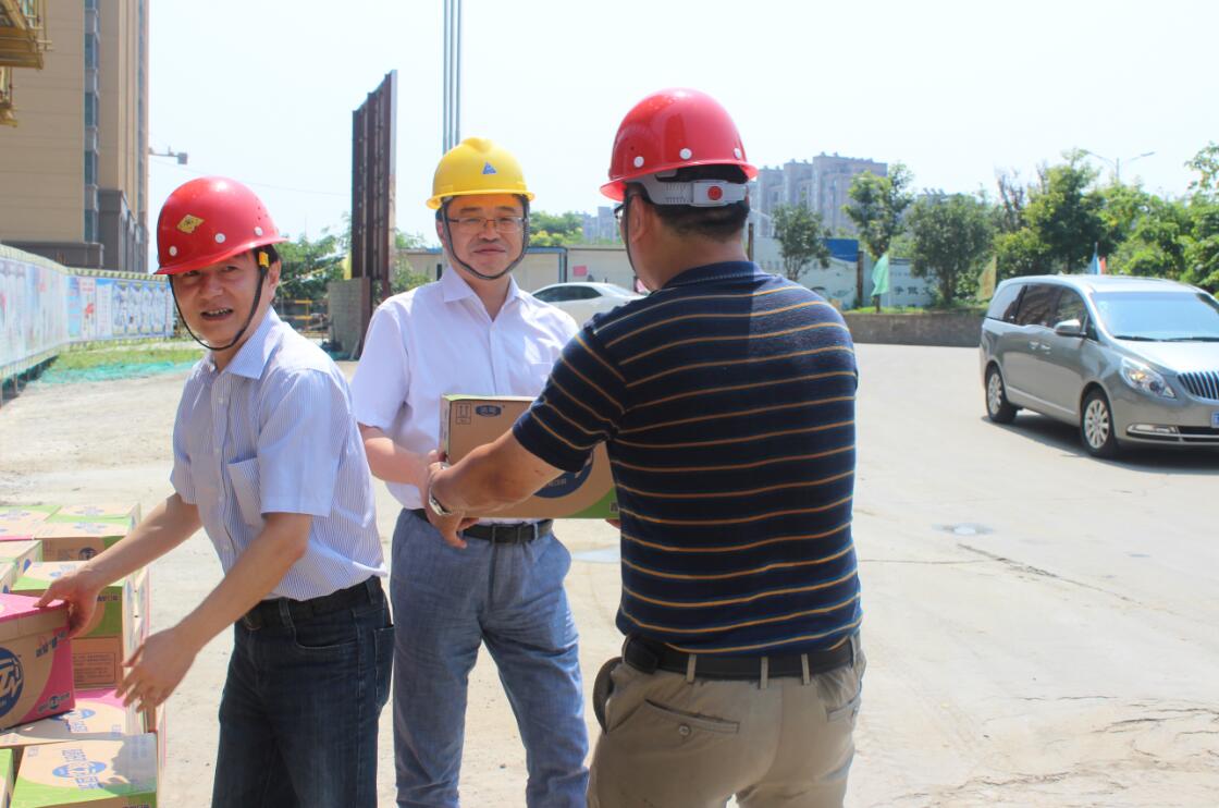 根據(jù)控股集團上半年經(jīng)濟工作會議精神,按照建設(shè)集團黨委的統(tǒng)一部署,7月29日上午,建設(shè)集團董事長、黨委副書記周君,總經(jīng)理、黨委副書記孫新山,副總經(jīng)理張鋼平一行赴溧水愛濤置地公司,慰問奮戰(zhàn)在施工現(xiàn)場的一線職工,并發(fā)放防暑降溫飲品,為廣大職工“送清涼”。