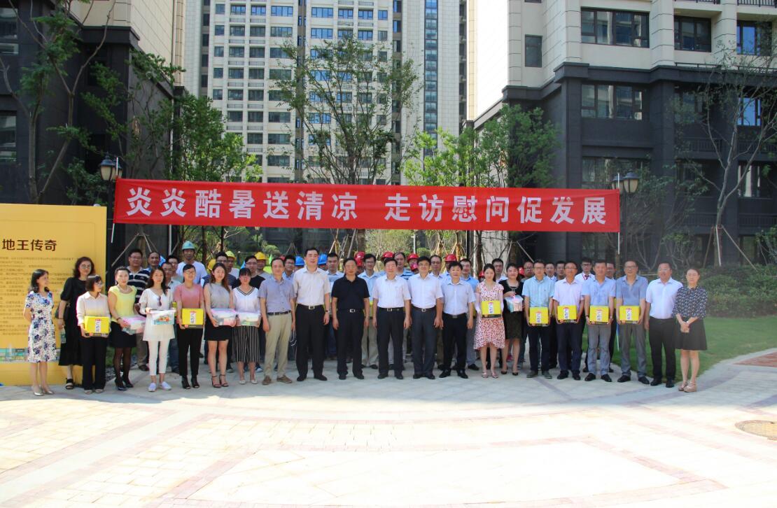 7月25日,蘇豪控股集團(tuán)黨委書(shū)記、董事長(zhǎng)王正喜、控股集團(tuán)副總裁、建設(shè)集團(tuán)黨委書(shū)記周謙一行冒著近四十度的高溫前往建設(shè)集團(tuán)尚書(shū)云邸項(xiàng)目,為員工送去清涼和關(guān)愛(ài)。在“送清涼”活動(dòng)中,王董事長(zhǎng)代表集團(tuán)黨委、工會(huì)為員工們贈(zèng)送了防暑降溫藥品和飲料等清涼物品。慰問(wèn)活動(dòng)結(jié)束后,王董事長(zhǎng)一行在項(xiàng)目?jī)?nèi)進(jìn)行了實(shí)地調(diào)研,并聽(tīng)取了工作進(jìn)展情況匯報(bào),王正喜董事長(zhǎng)對(duì)建設(shè)集團(tuán)愛(ài)濤置業(yè)公司房地產(chǎn)開(kāi)發(fā)快速高效的工作給予了充分的肯定,并向全體員工致以誠(chéng)摯敬意和衷心的感謝。王董事長(zhǎng)強(qiáng)調(diào),今年暑運(yùn)期間溫度高,外部作業(yè)人員面臨嚴(yán)峻考驗(yàn),各部門(mén)領(lǐng)導(dǎo)、各級(jí)管理人員務(wù)必要重視防暑降溫工作,心系一線員工,合理安排員工上崗時(shí)間。在防暑降溫措施上,不僅限于送清涼,要關(guān)注重點(diǎn)崗位工作需求,讓廣大員工平安度過(guò)高溫季節(jié)。